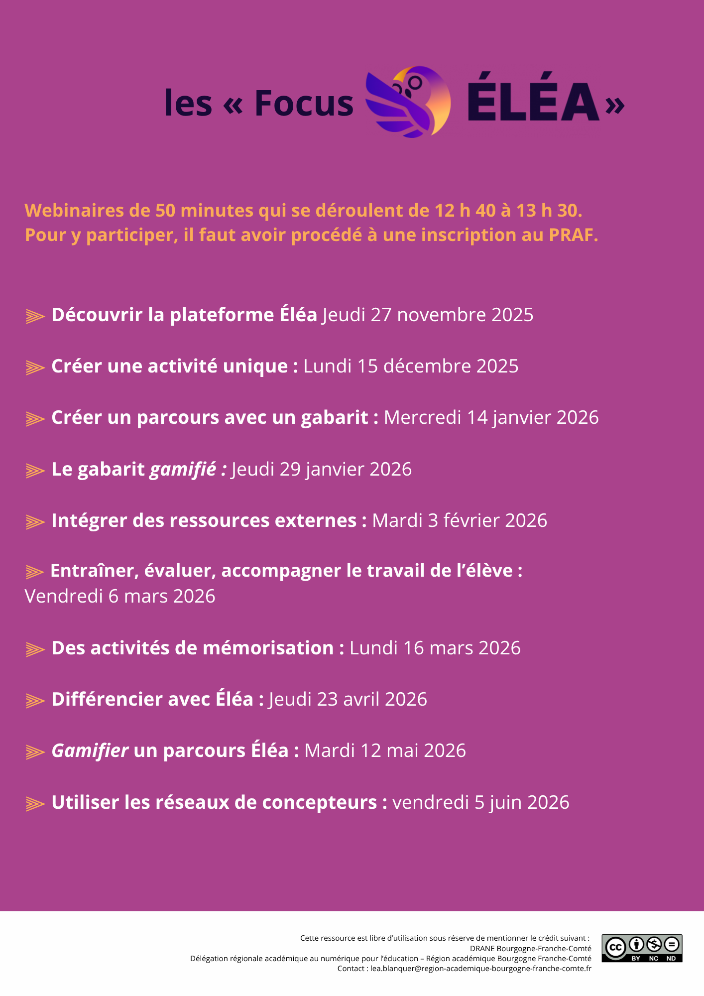 Éléa permet aux enseignants des écoles, collèges et lycées de créer des parcours d’apprentissage scénarisés et personnalisés, tout en intégrant des éléments interactifs, engageants et motivants. La plateforme est également accessible à toute personne de l’équipe pédagogique (CPE, infirmière scolaire, …).
