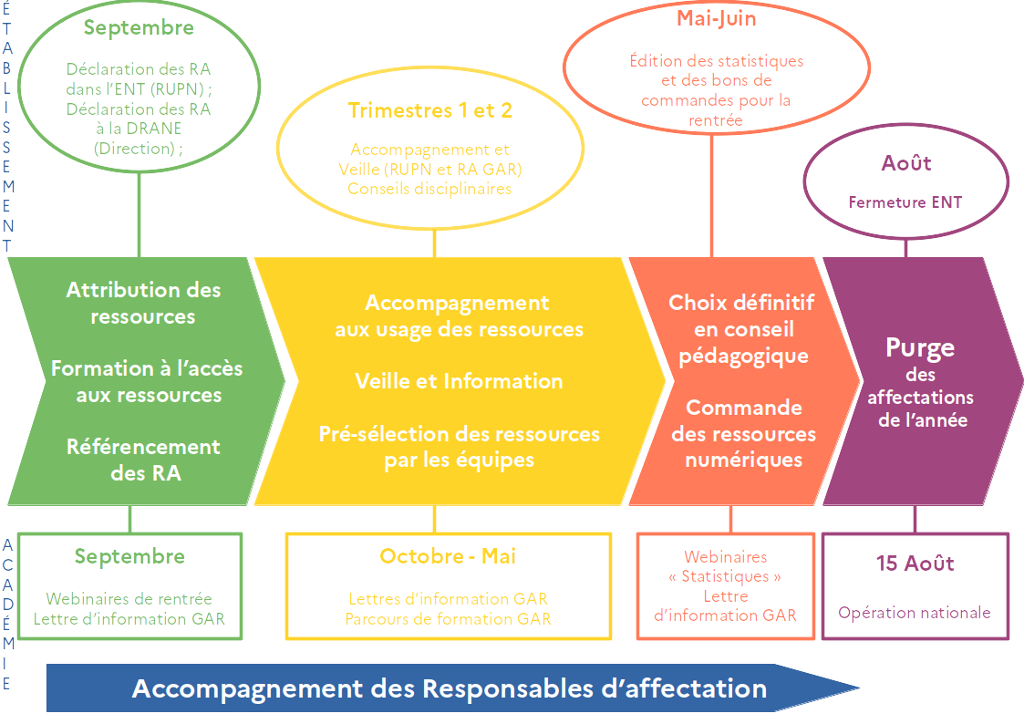 Les responsables d’affectation délégués participent à la gestion « au quotidien ». En lien avec les référents numériques, il contribue au développement des usages des ressources numériques au sein de l’école ou de l’établissement.Les sélection et attribution des ressources numériques doivent être conduite s collectivement selon la politique numérique pilotée par le directeur ou le chef d’établissement.