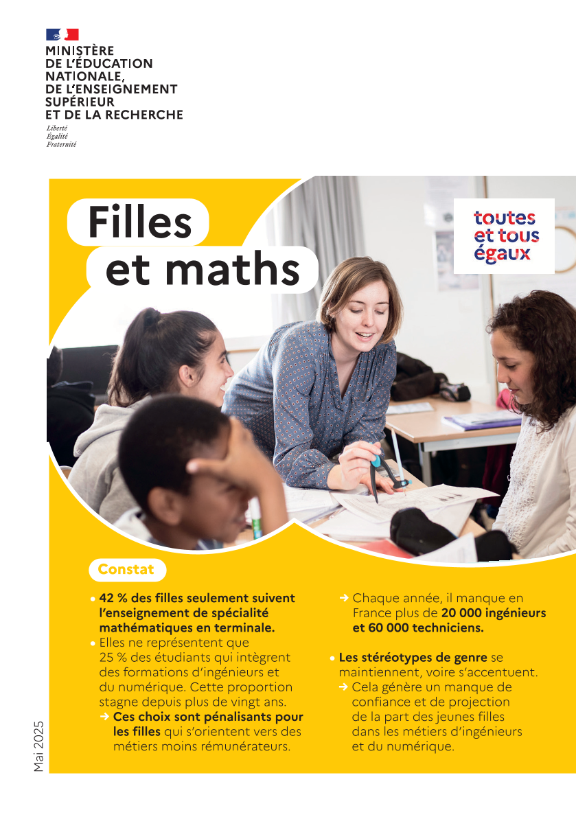 Plan Filles et maths : pour que les jeunes filles prennent toute leur place dans les métiers de l’ingénieur et du numérique (Eduscol, mai 2025)
