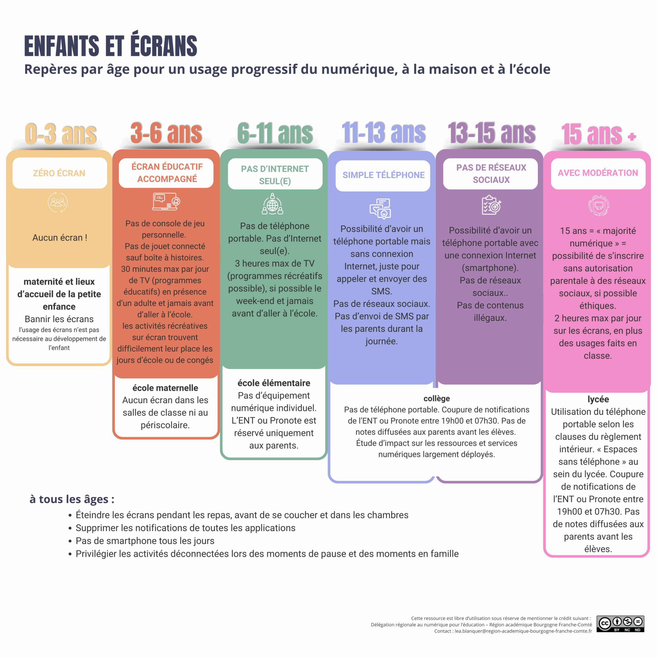 Téléchargez l’infographie Repères par âge pour un usage progressif des écrans (DRNE, 2025)