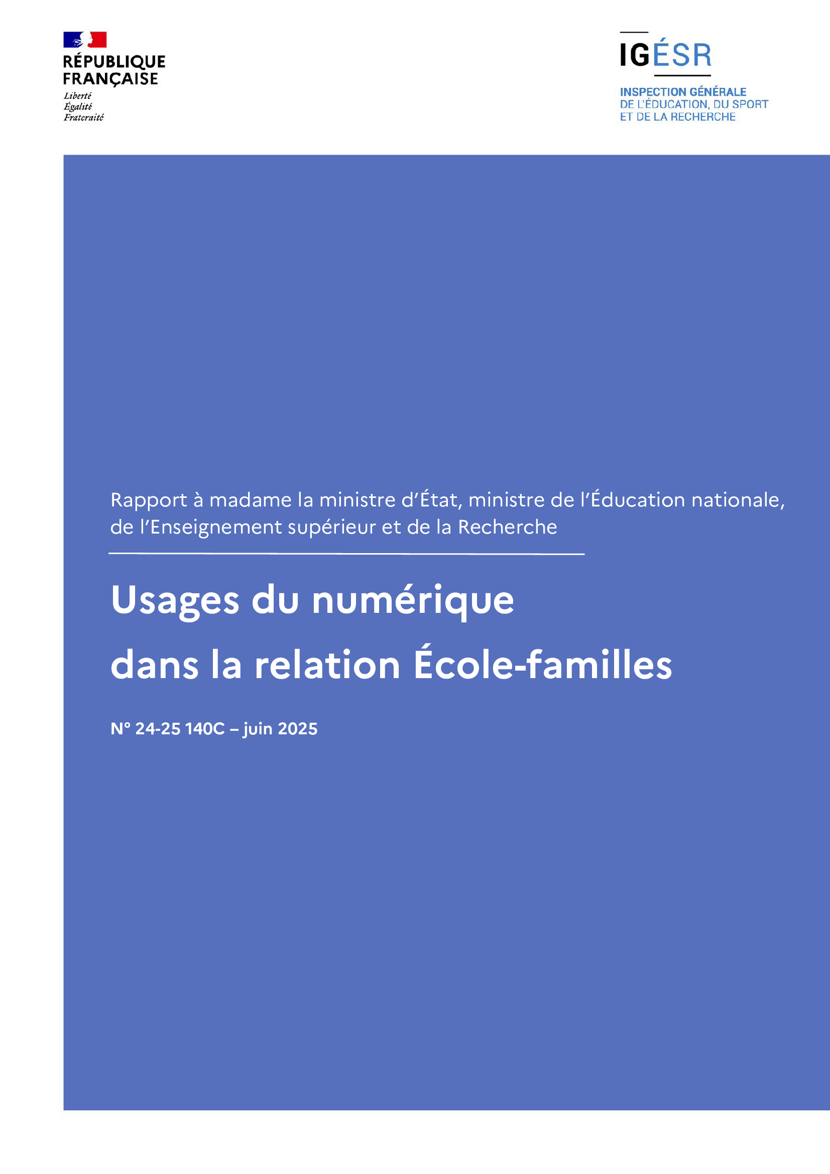 ▶ Consultez le rapport Usages du numérique dans la relation Ecole-famille (IGESR, juin 2025)
