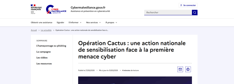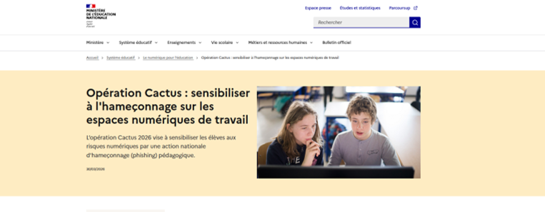 Elle s’inscrit plus largement dans la mission d’Éduscol, qui est d’informer et d’accompagner les professionnels de l’éducation avec des ressources et actualités pédagogiques. En pratique, la page sert donc de relais institutionnel pour prolonger l’opération Cactus en classe et aider les enseignants à intégrer la cybersécurité dans leurs actions éducatives .