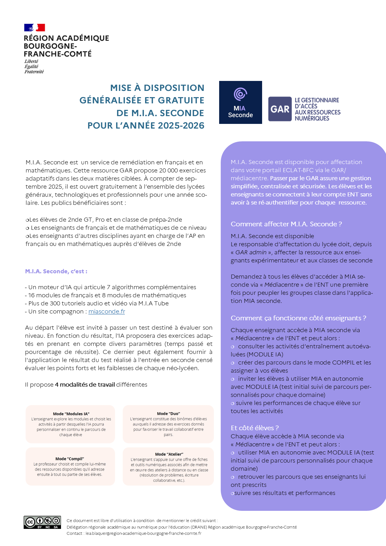 Mise à disposition généralisée et gratuite M.I.A Seconde à compter de septembre 2025