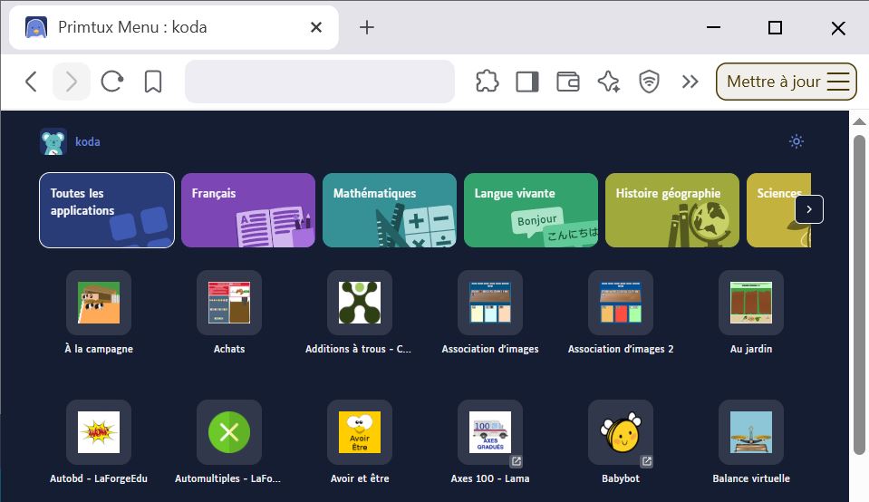 147 des 347 applications intégrées dans PrimTux sont aujourd’hui disponibles depuis votre navigateur