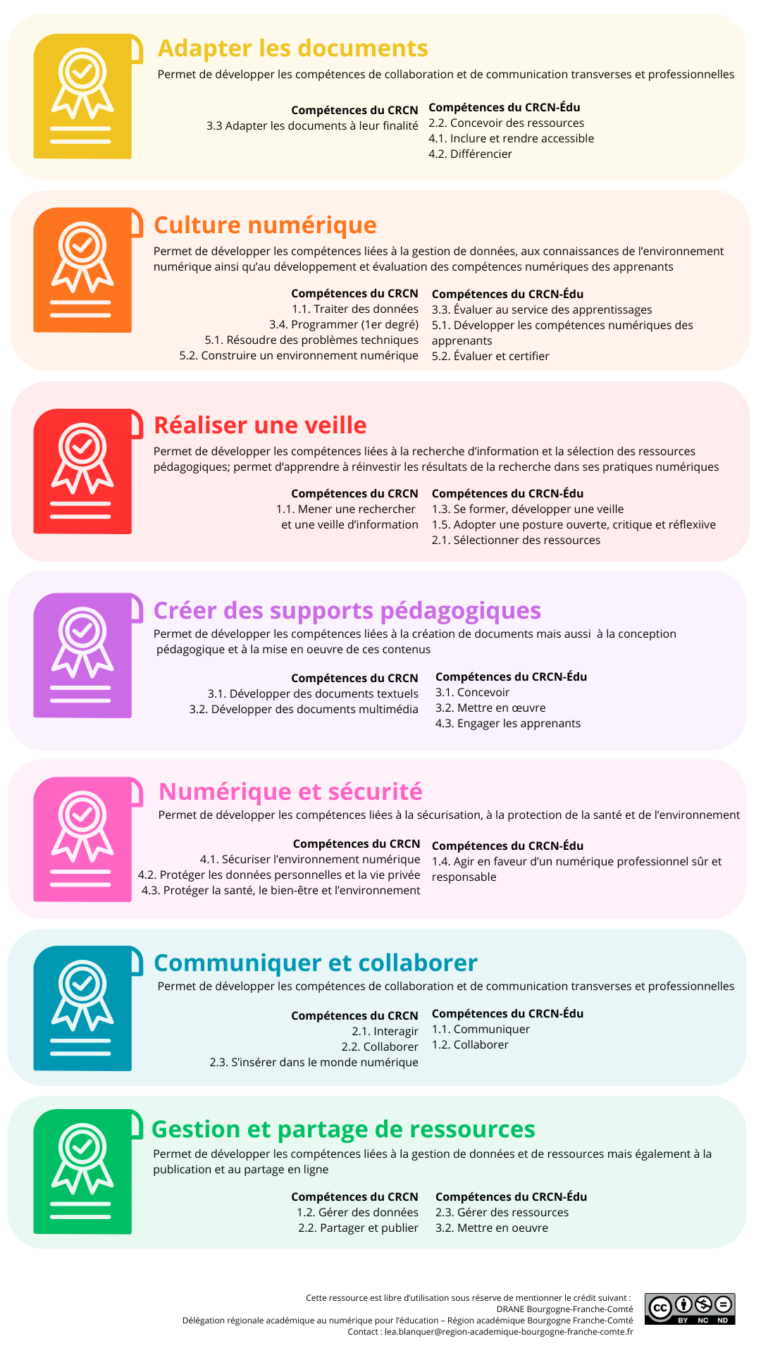 • Un parcours bilan valide son niveau de maitrise. Voici quelques exemples des thématiques abordées : adapter les documents, communiquer et collaborer, créer des supports pédagogiques, gestion et partage de ressources, numérique et sécurité,