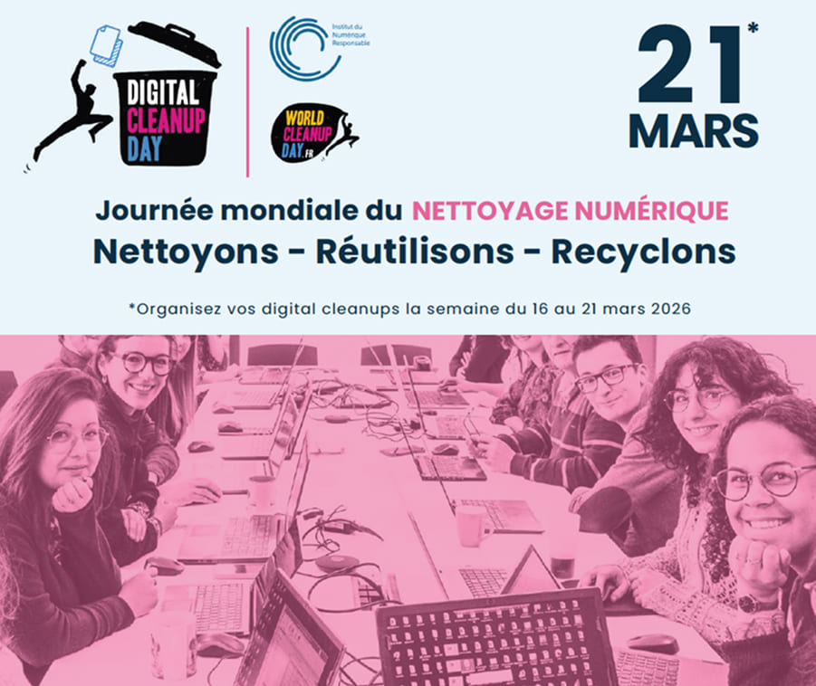 Le Digital Cleanup day ou World Cleanup day (ou Journée mondiale du nettoyage de la planète) est une initiative co-portée par l‘association éponyme et l’Institut du numérique responsable (INR) qui vise à sensibiliser sur l’impact environnemental de notre consommation numérique et à impulser des actions pour nettoyer nos données ou offrir une seconde vie à nos équipements numériques.