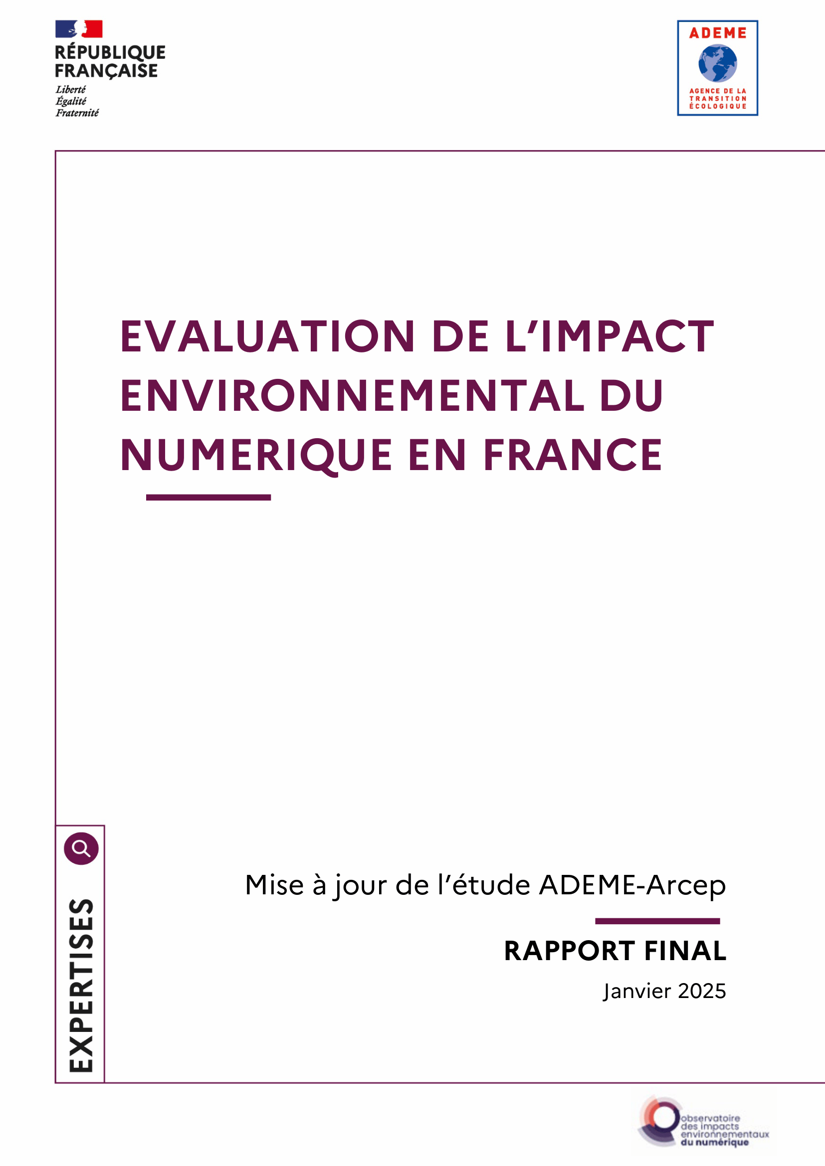 Elle produit également régulièrement des rapports sur cette thématique, notamment Les avis de l’Adème : Numérique & environnement : entre opportunités et nécessaire sobriété (janvier 2025) ou Évaluation de l’impact environnemental du numérique en France (janvier 2025).